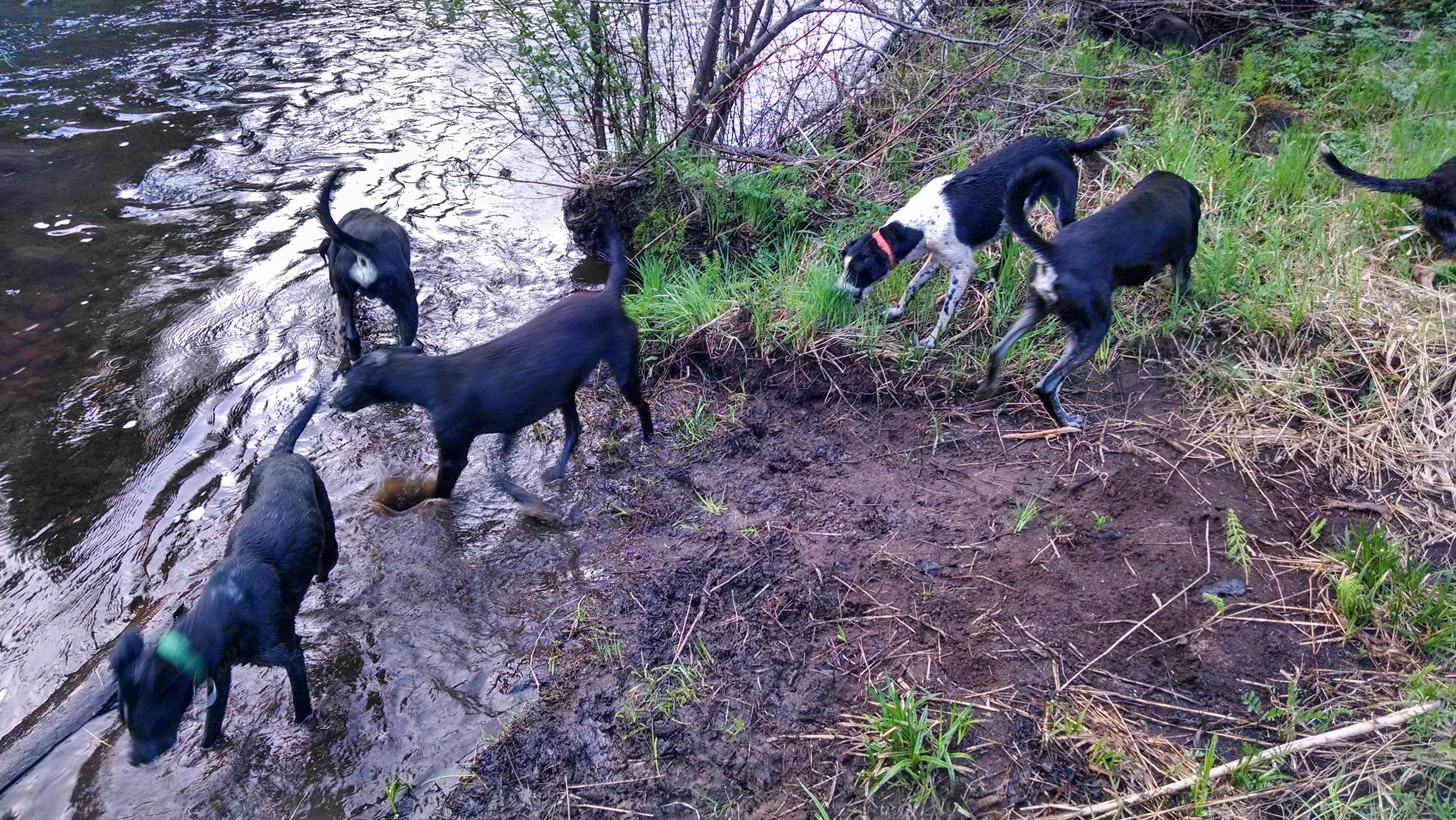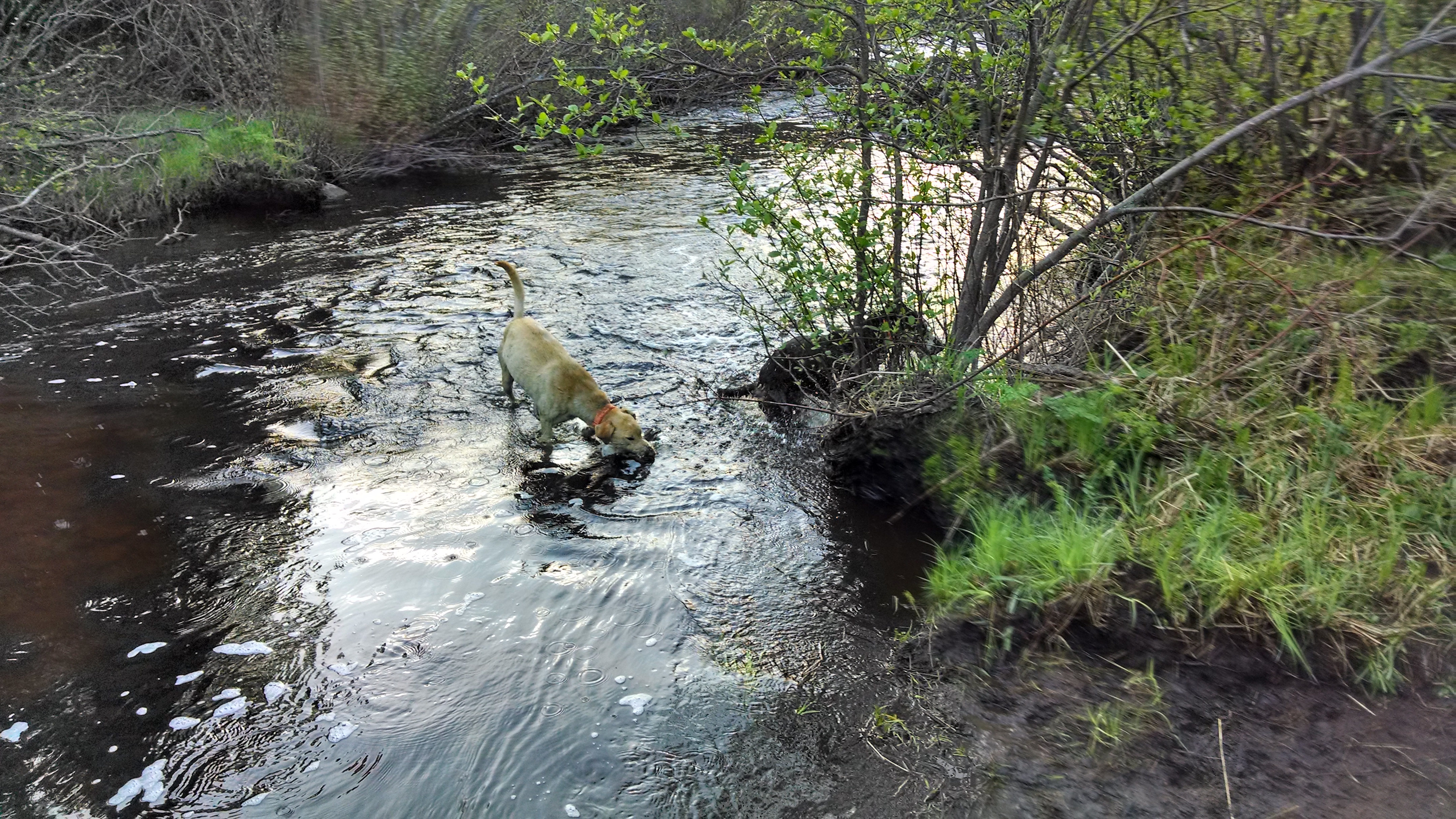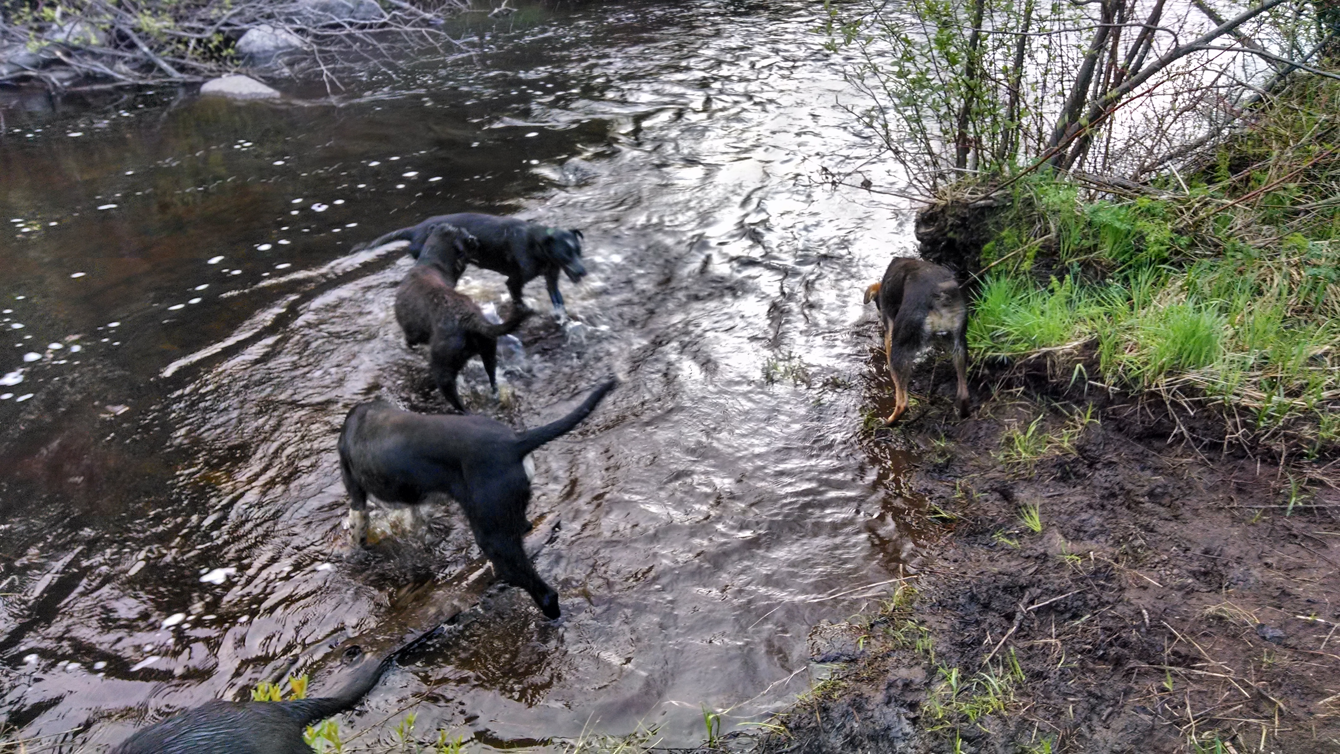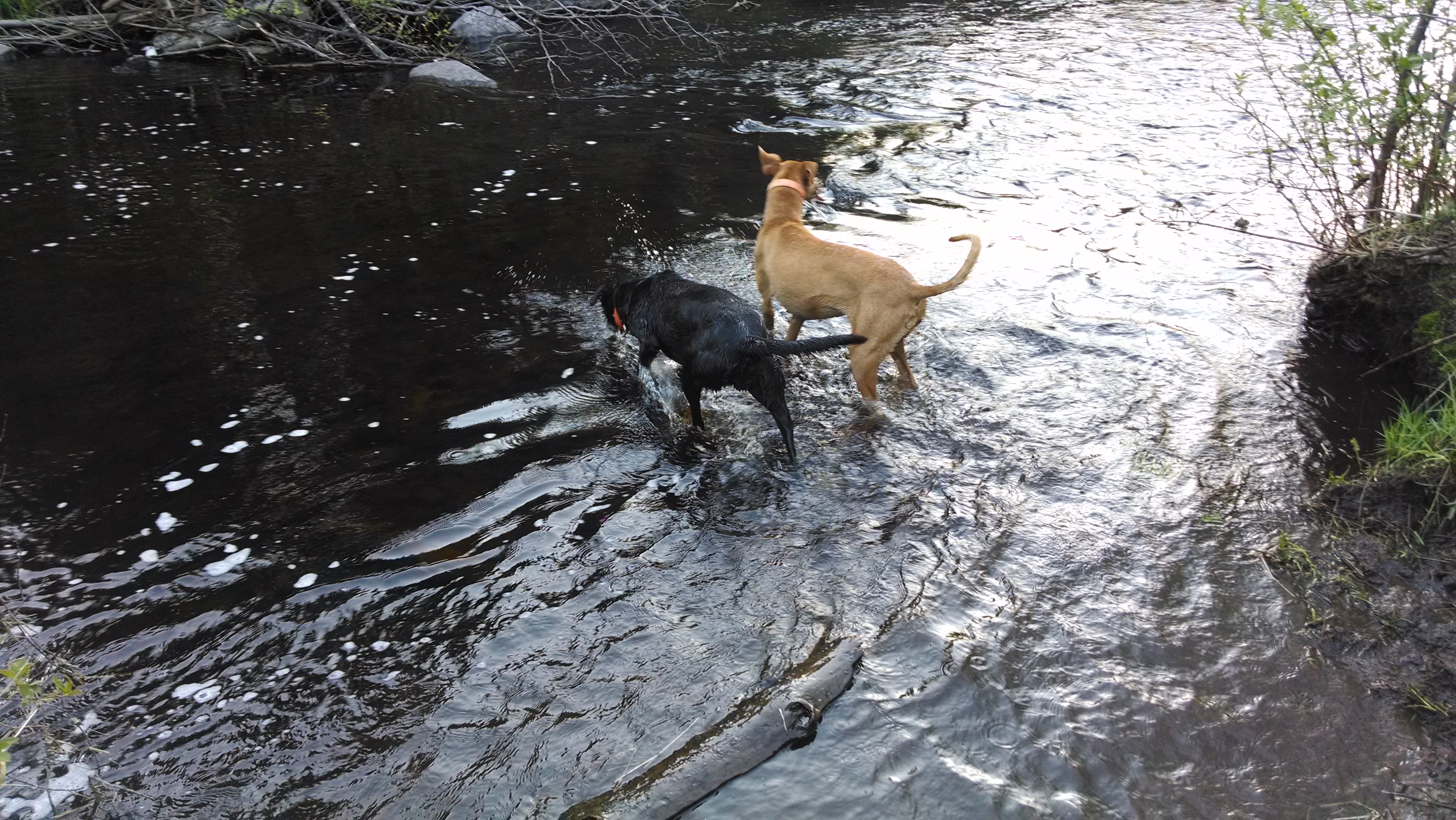 We are well out of harness training season but still free run on the cool summer mornings with plenty of opportunity for drinks and swimming to keep cool. This morning on May 28 was a cool 46 F, perfect summer temp for a rompin’ be-bop in the woods. Our typical morning free runs are 3-9 miles depending on temp, humidity, and water availability.